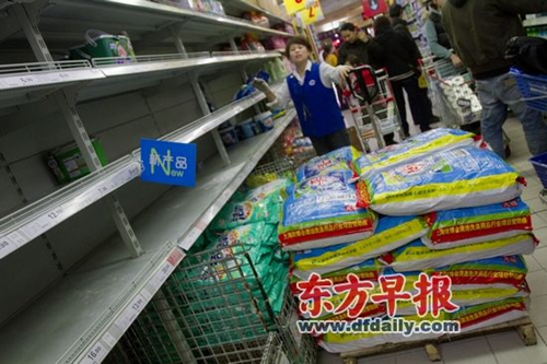 據(jù)上海市商務(wù)委有關(guān)人士透露,由于補(bǔ)貨及時(shí),昨天下午1時(shí)后全市各大超市、賣(mài)場(chǎng)相關(guān)貨架基本已恢復(fù)正常。