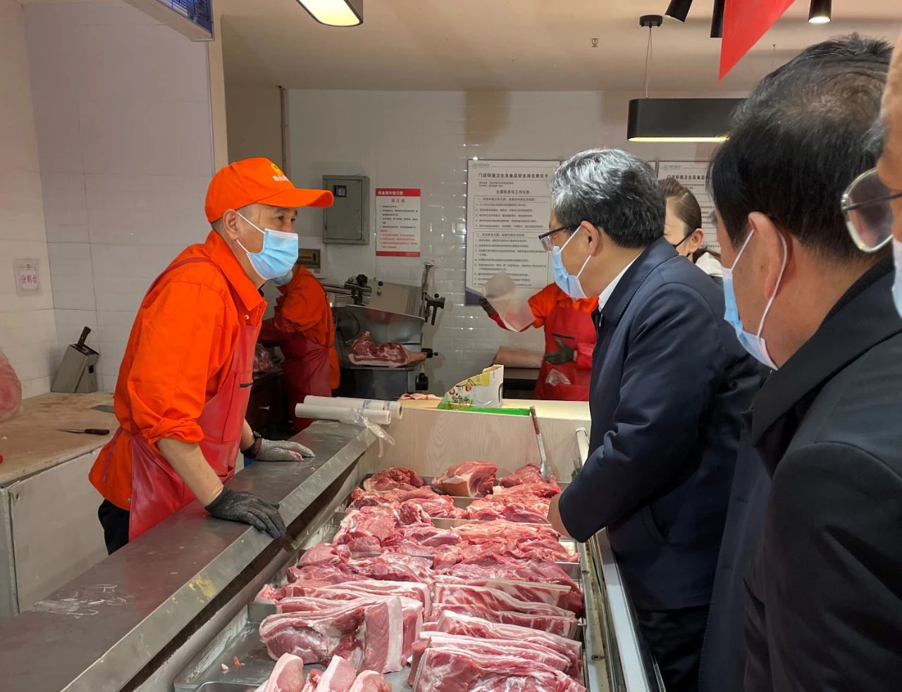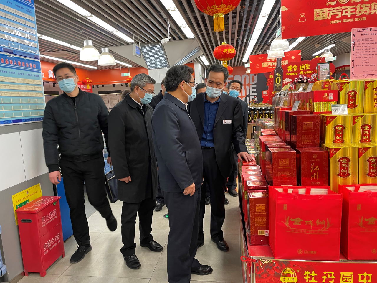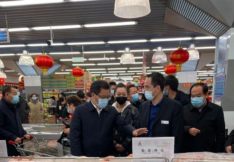2月10日,甘肅省委副書記、省長(zhǎng)任振鶴,甘肅省委常委、蘭州市市委書記李榮燦,甘肅省政府秘書長(zhǎng)李志勛,甘肅省市場(chǎng)監(jiān)管管理局局長(zhǎng)王忠習(xí),蘭州市市長(zhǎng)張偉文等省市領(lǐng)導(dǎo)一行調(diào)研指導(dǎo)春節(jié)保障供應(yīng)及慰問超市一線員工。