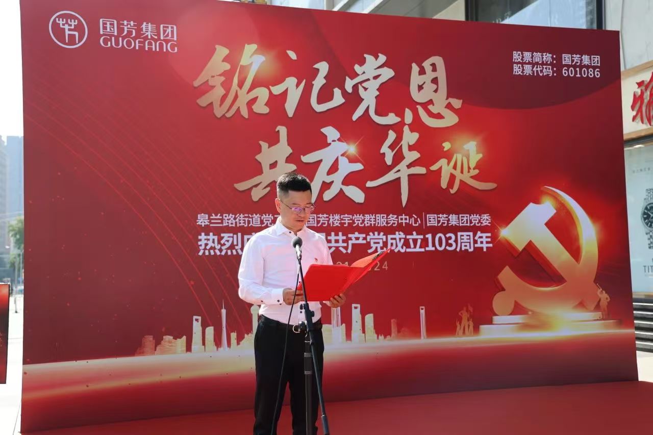 為慶祝偉大的中國共產(chǎn)黨建黨103周年,進(jìn)一步貫徹落實黨的二十大精神和習(xí)近平總書記關(guān)于黨紀(jì)條例學(xué)習(xí)教育的重要講話和指示精神,豐富黨員和員工文化生活,在七一建黨節(jié)即將來臨之際,國芳集團(tuán)黨委協(xié)同皋蘭路街道黨工委、國芳樓宇黨群服務(wù)中心入駐企業(yè)黨組織共同舉辦“銘記黨恩、共慶華誕”慶祝中國共產(chǎn)黨建黨103周年主題黨日活動。