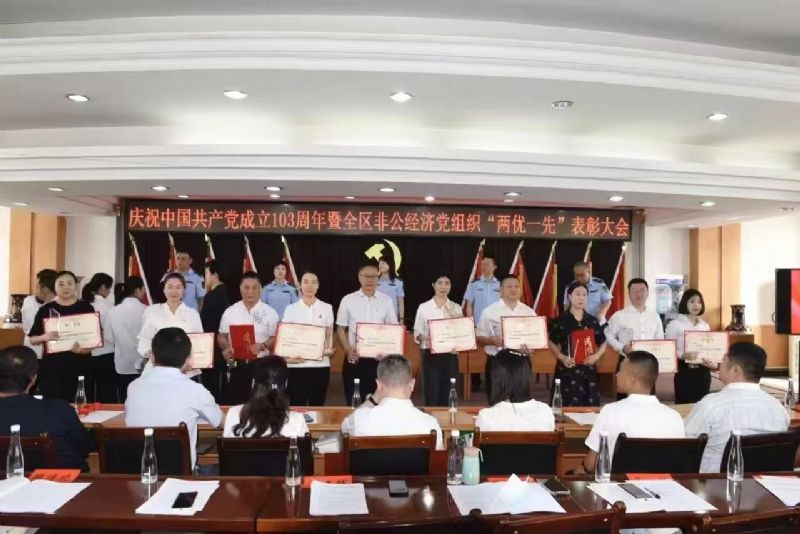 2024 年7月9日上午,“中共蘭州市城關(guān)區(qū)非公有制經(jīng)濟組織委員會紀念建黨 103 周年暨兩優(yōu)一先表彰大會”在城關(guān)區(qū)市場監(jiān)督管理局十樓隆重召開。